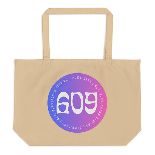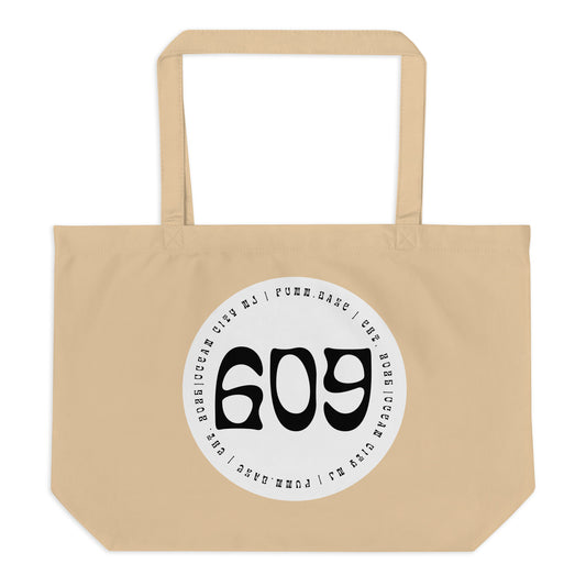 "609" Organic Tote, Large (White in Pink on Sand or Black, Single Side)