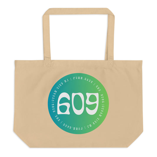 "609" Organic Tote, Large (White in Green on Sand or Black, Single Side)